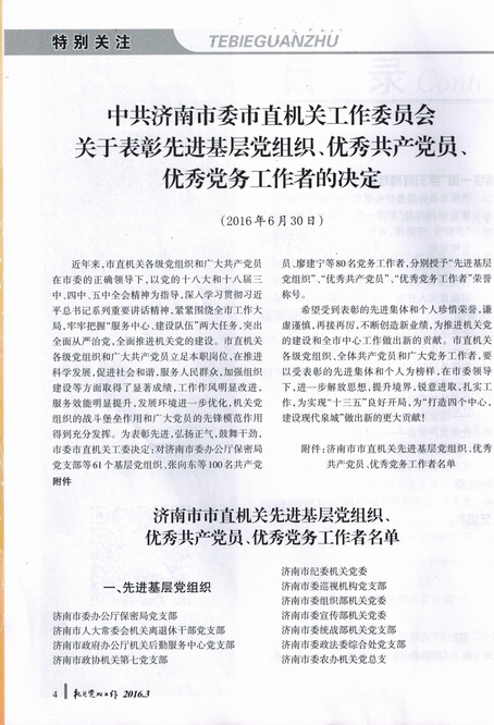 關(guān)于轉(zhuǎn)發(fā)《中共濟(jì)南市委市直機(jī)關(guān)工作委員會關(guān)于表彰先進(jìn)基層黨組織、優(yōu)秀共產(chǎn)黨員、 優(yōu)秀黨務(wù)工作者的決定》的通知