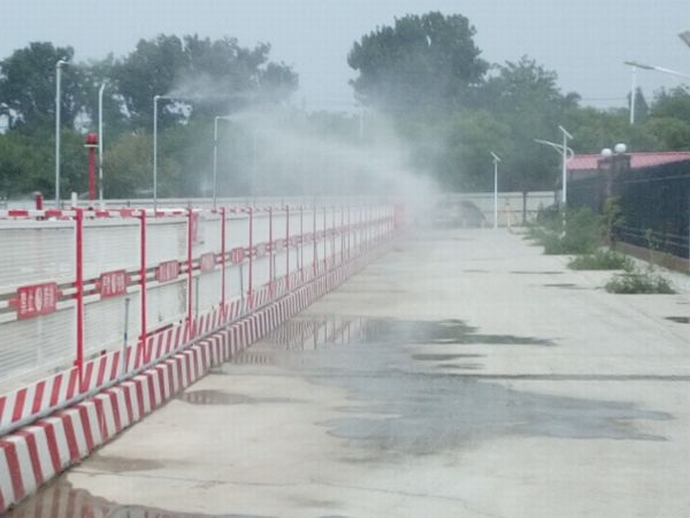 3.配備揚(yáng)塵監(jiān)控系統(tǒng),對揚(yáng)塵進(jìn)行實時監(jiān)測;安裝洗車臺,對進(jìn)出車輛進(jìn)行清洗;安裝噴淋,定時定點進(jìn)行灑水降塵;配備灑水車,對施工現(xiàn)場定時灑水降塵,配備霧炮進(jìn)行降塵;主體施工期間,對道路兩側(cè)裸露部位進(jìn)行了成品草皮及苗木綠化;對出入口硬化,施工現(xiàn)場便道必須采用混凝土硬化覆蓋。