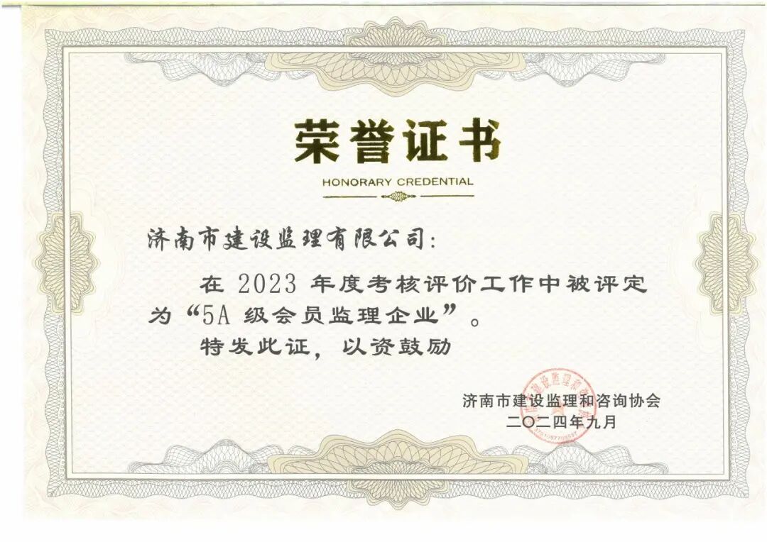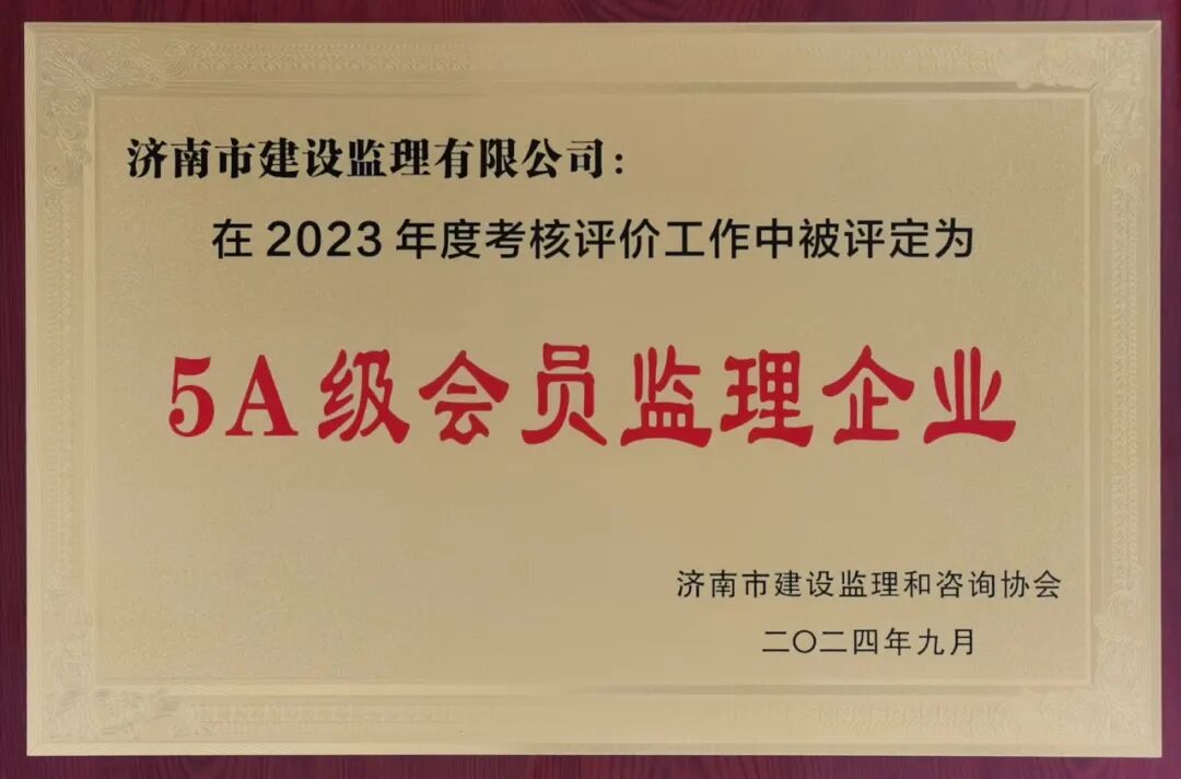喜報(bào)!濟(jì)南監(jiān)理榮獲中國(guó)工程監(jiān)理AAA級(jí)信用企業(yè)及濟(jì)南市5A級(jí)會(huì)員監(jiān)理企業(yè)