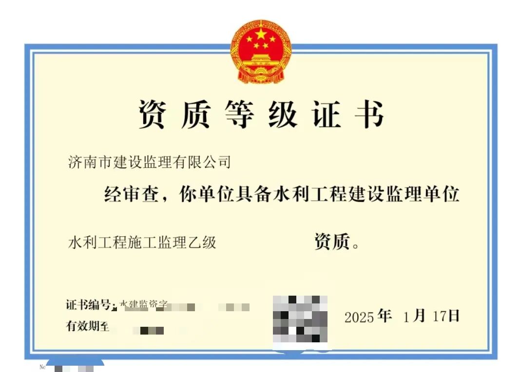 熱烈祝賀濟南監(jiān)理取得兩項水利工程建設監(jiān)理資質(zhì)